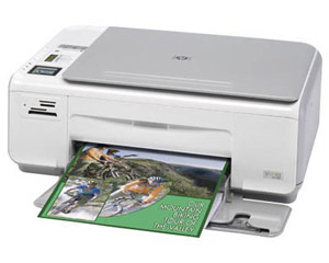 | Вот прикупил на днях. HP Photosmart C4283 Характеристики Принтер цветной Тип печати струйный Разрешение ч/б печати 4800 x 1200 pix Разрешение цветной печати 4800 x 1200 pix Скорость ч/б печати 30 стр./мин Скорость цветной печати 23 стр./мин Формат бумаги A4 Копир есть Разрешение 4800 x 1200 pix Скорость ч/б копира 30 стр./мин. Скорость цветного копира 23 стр./мин Масштабирование 400 % Сканер есть Тип сканера полноцветный планшетный Макс. формат A4 Оптическое разрешение 1200 x 2400 dpi Скорость сканирования 13-48 мсек/линия Податчик бумаги 100 лист Выходной лоток 50 лист Интерфейс USB Память 32 Mb Энергопотребление 70 Вт Размеры 43.4x39.4x16.2 см Вес 5.09 кг Дополнительная информация Совместимость с картами памяти CompactFlash, Memory Stick или Memory Stick Duo, Secure Digital (SD) или MultiMediaCard (MMC), xD-Picture Card. Поддерживаемые типы носителей: бумага (обычная, для струйной печати, фотобумага), конверты, прозрачные плёнки, наклейки, открытки, печатные носители HP повышенного качества, носители для горячего перевода изображений, носители для печати без полей, носители панорамного формата.